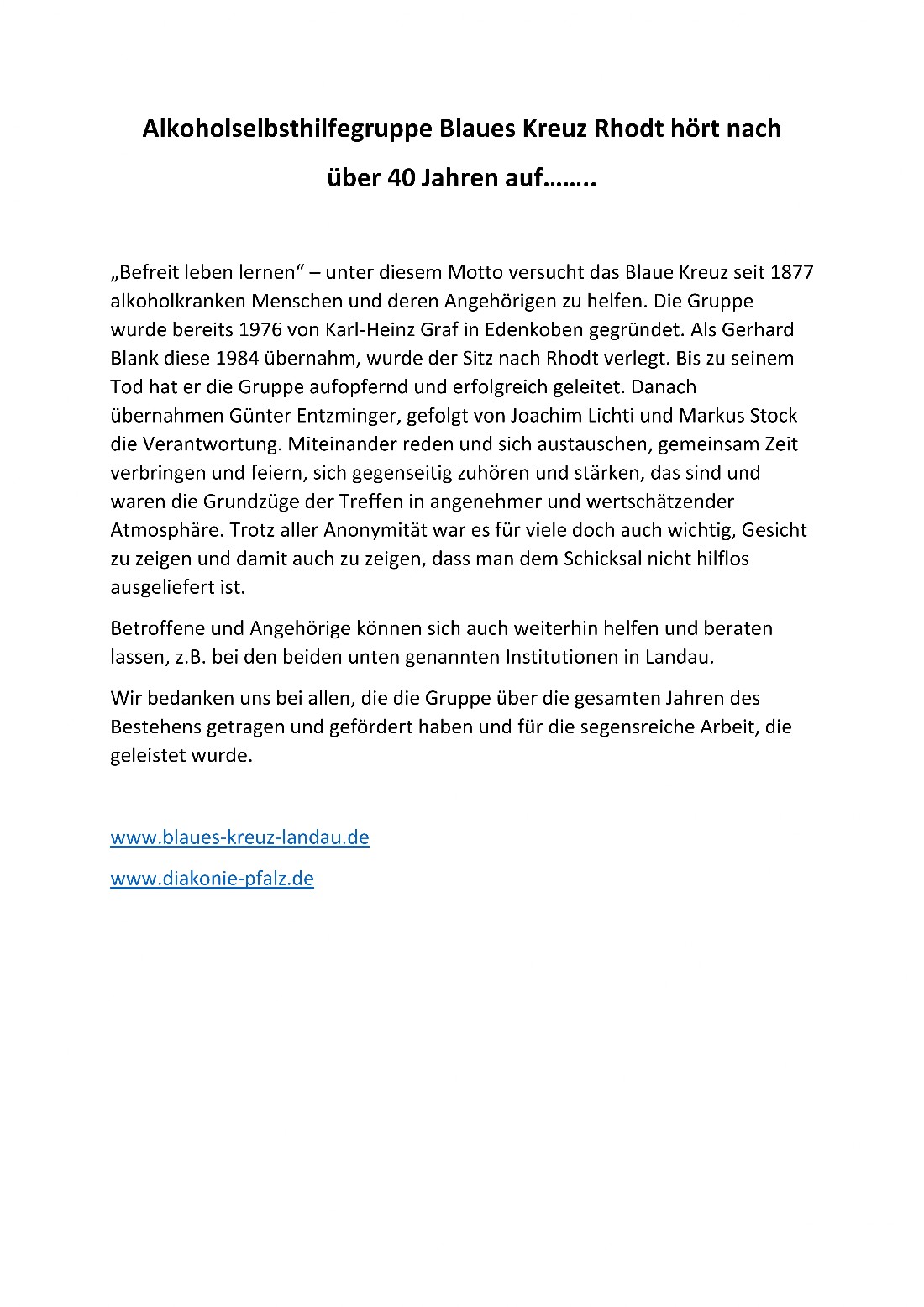 Freundeskreis Blaues Kreuz Landau mit Außenstellen
